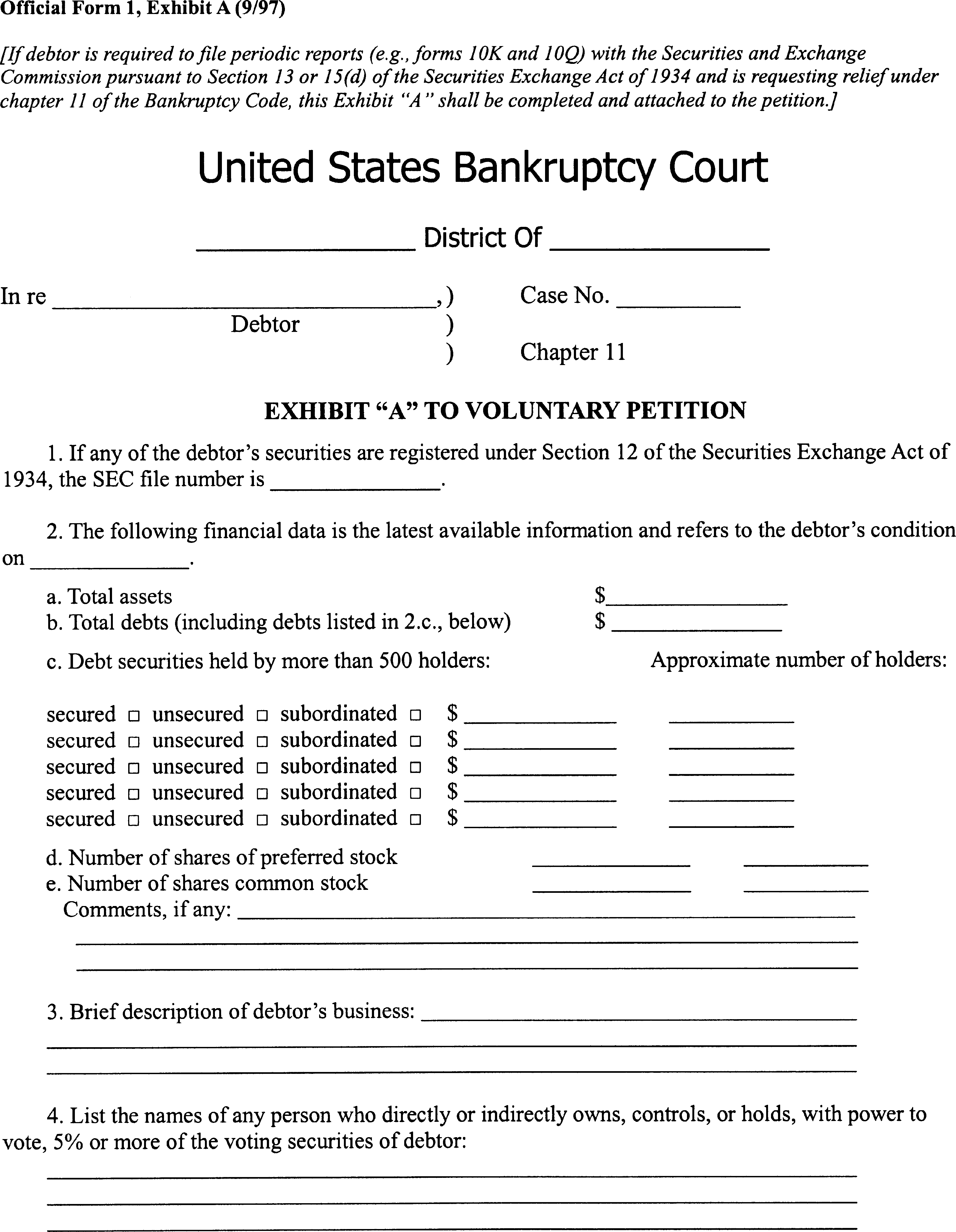 This form is new. It implements §433 of the Bankruptcy Abuse Prevention and Consumer Protection Act of 2005, Pub. L. No. 109–8, 119 Stat. 23 (April 20, 2005), which provides for an official form for a disclosure statement that may be used in cases where the debtor (whether an individual or an artificial entity) is a small business debtor under §101(51D) of the Code. The form provides a format for disseminating information to parties in interest about the plan of reorganization in a small business debtor's chapter 11 case, so that a party can make a reasonably informed judgment whether to accept, reject, or object to a proposed plan of reorganization or liquidation.