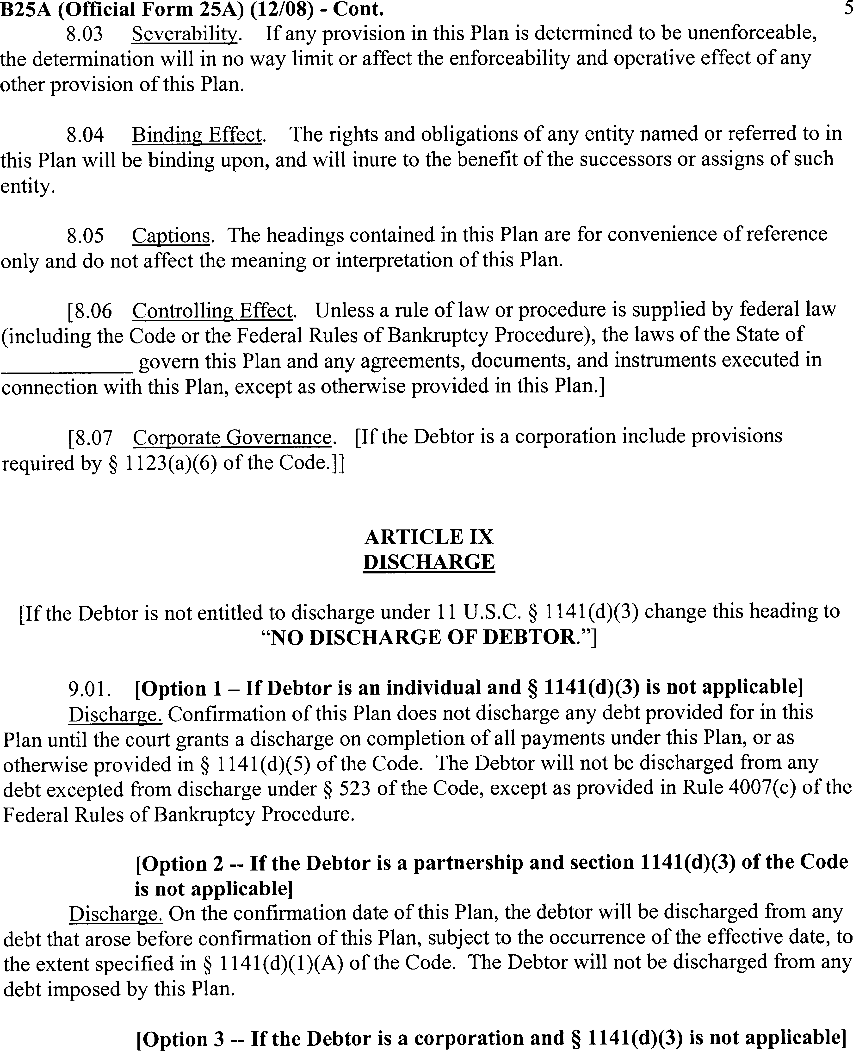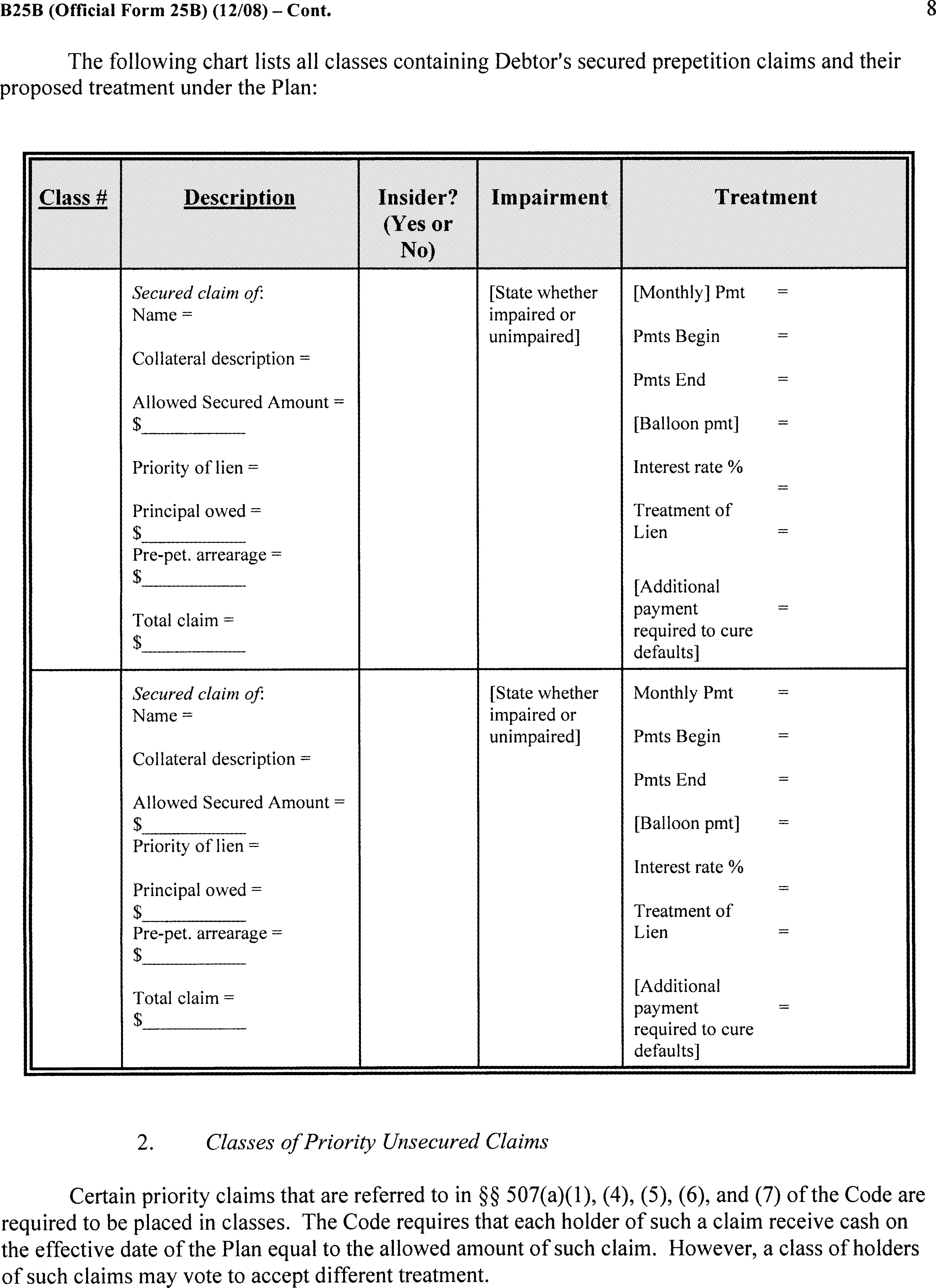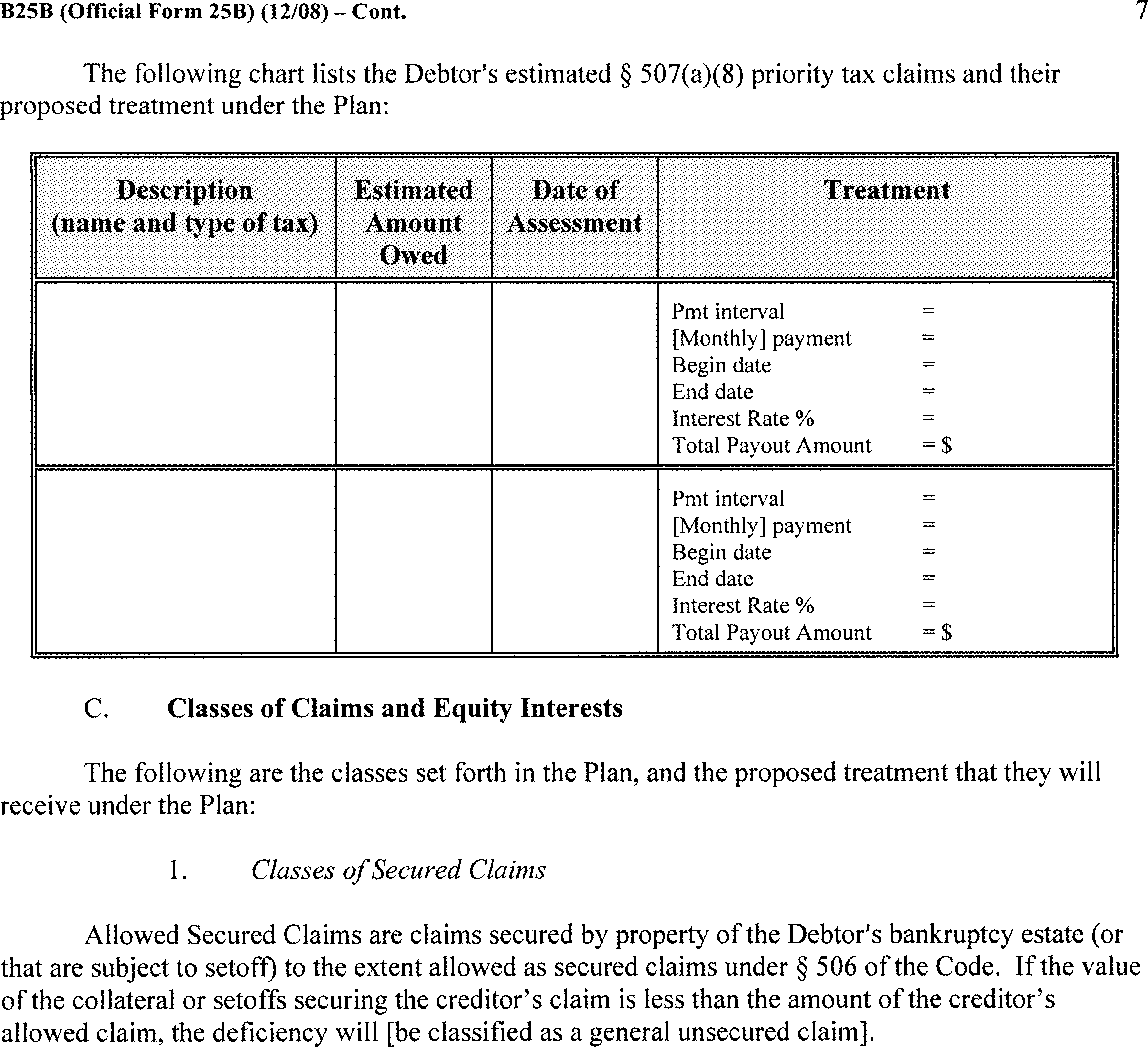 Because the type of debtor and the details of the proposed plan of reorganization may vary, the form is intended to provide an illustrative format, rather than a specific prescription for the language or content of a plan in any particular case. The form includes instructions and examples of the types of information needed to complete it.