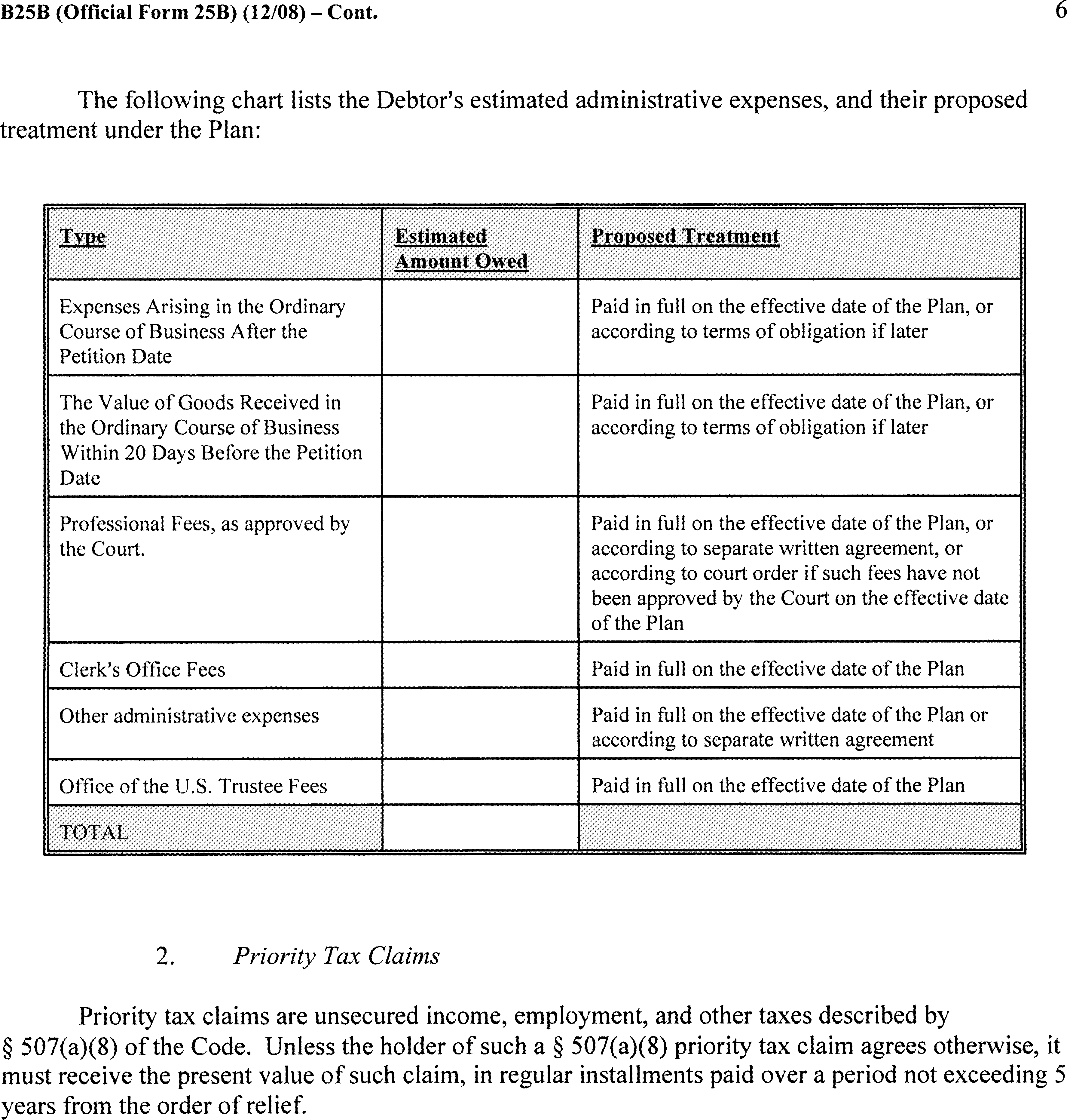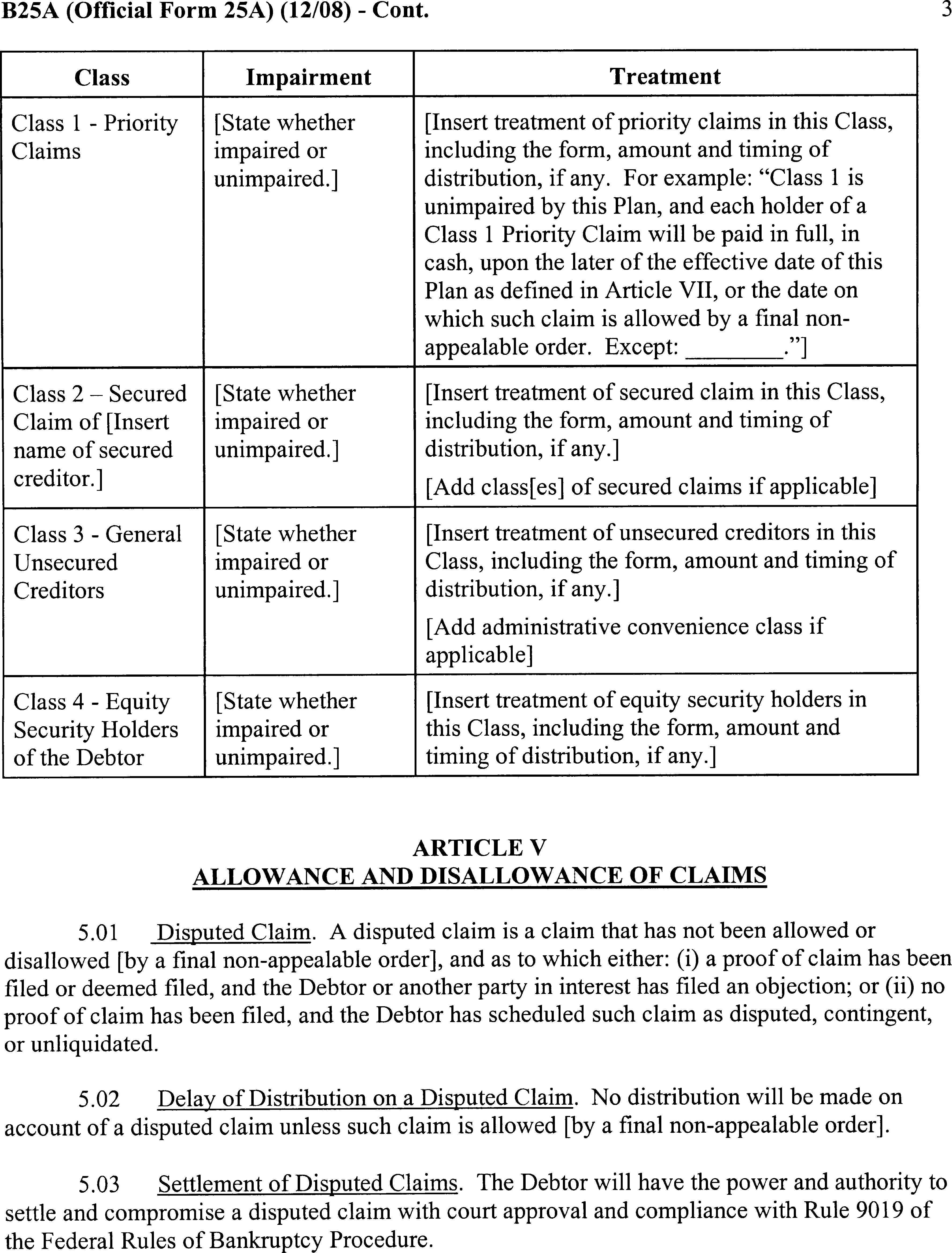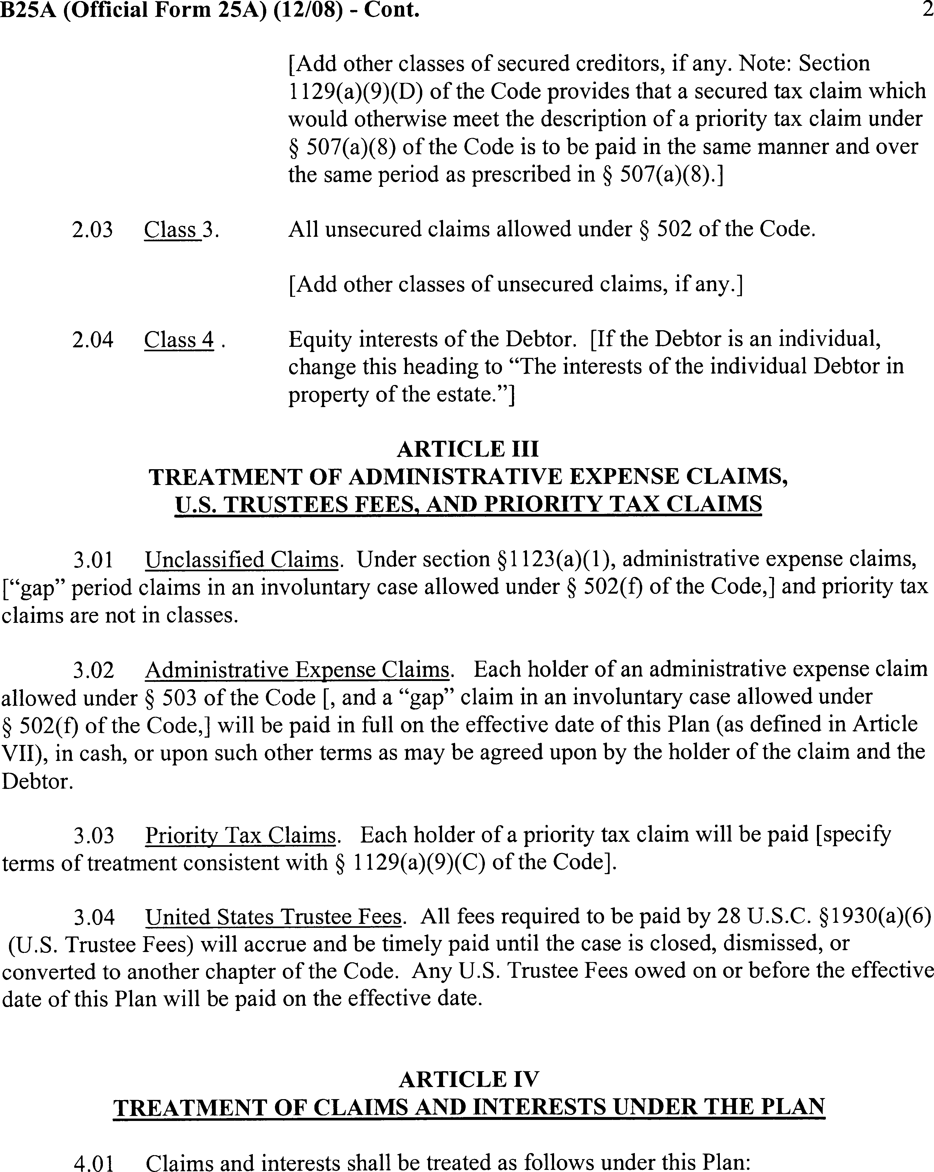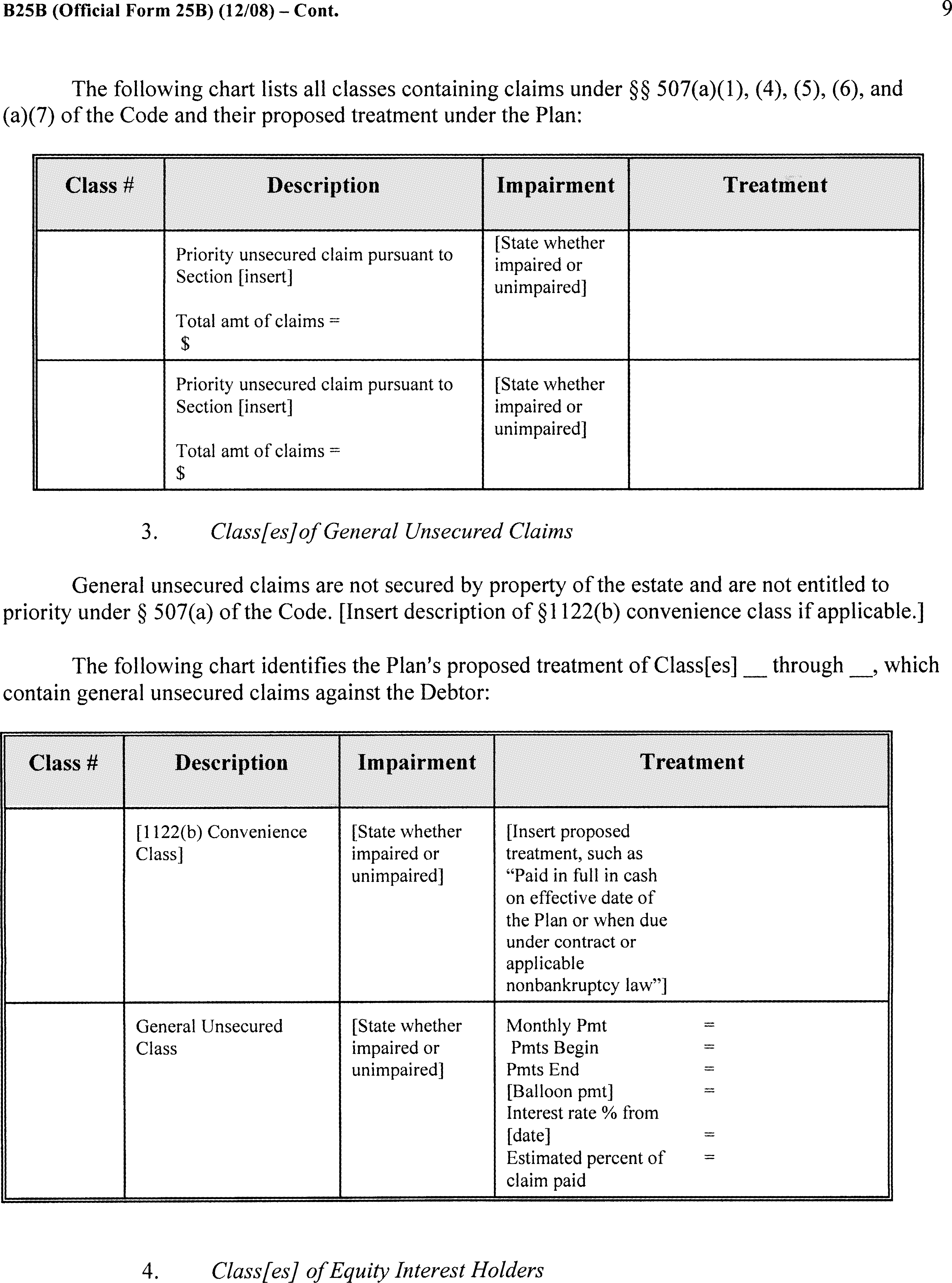 Because the type of debtor and the details of the proposed plan of reorganization may vary, the form is intended to provide an illustrative format, rather than a specific prescription for the language or content of a plan in any particular case. The form includes instructions and examples of the types of information needed to complete it.