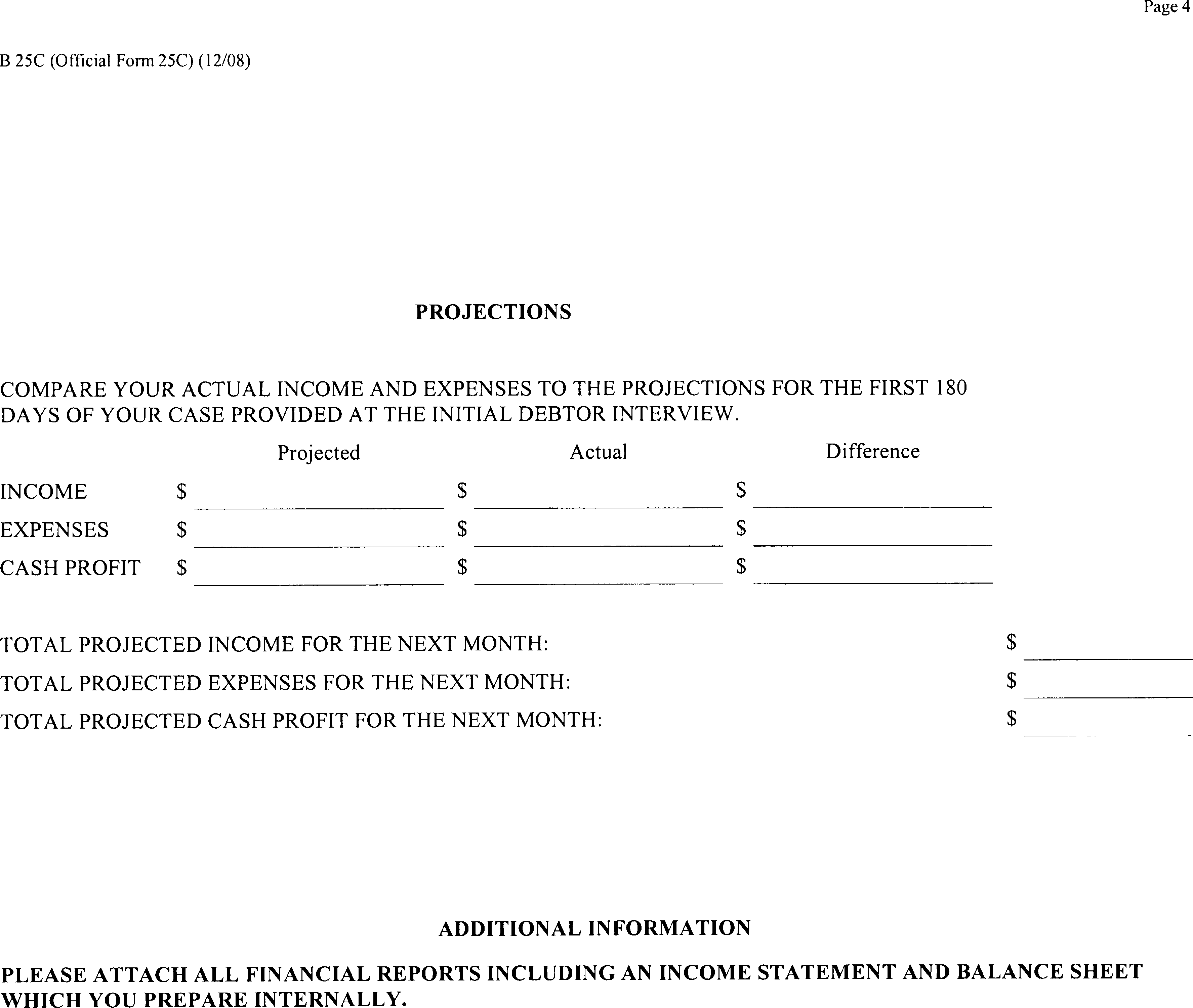The Chapter 11 form is the simplest of the three, since the means-test deductions of §707(b)(2) are not employed in determining the extent of an individual Chapter 11 debtor's disposable income. Section 1129(a)(15) requires payments of disposable income “as defined in section 1325(b)(2),” and that paragraph allows calculation of disposable income under judicially-determined standards, rather than pursuant to the means test deductions, specified for higher income Chapter 13 debtors by §1325(b)(3). However, §1325(b)(2) does require that CMI be used as the starting point in the judicial determination of disposable income, and so the Chapter 11 form requires this calculation (in Part I of the form), as described above, together with a verification (in Part II).