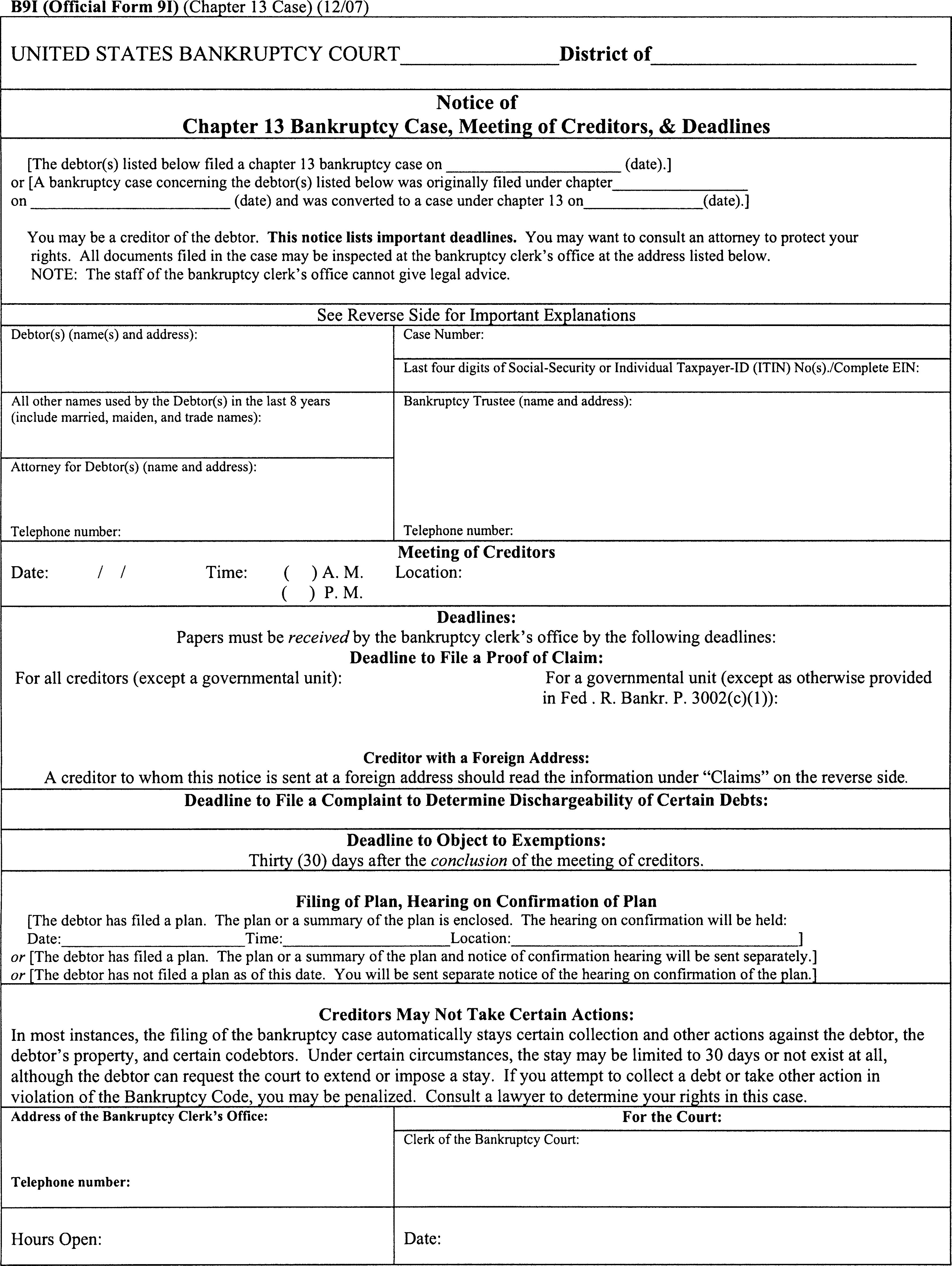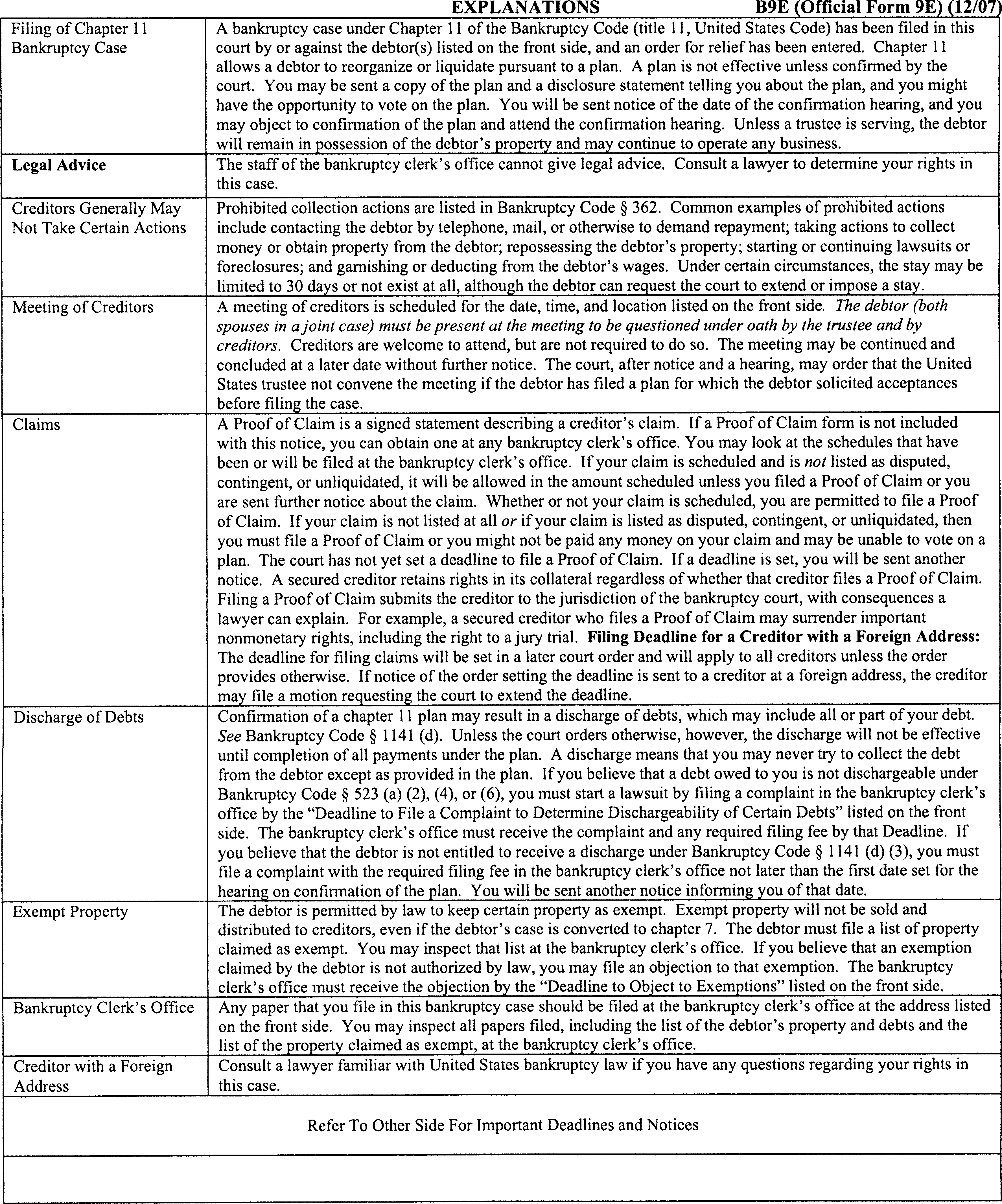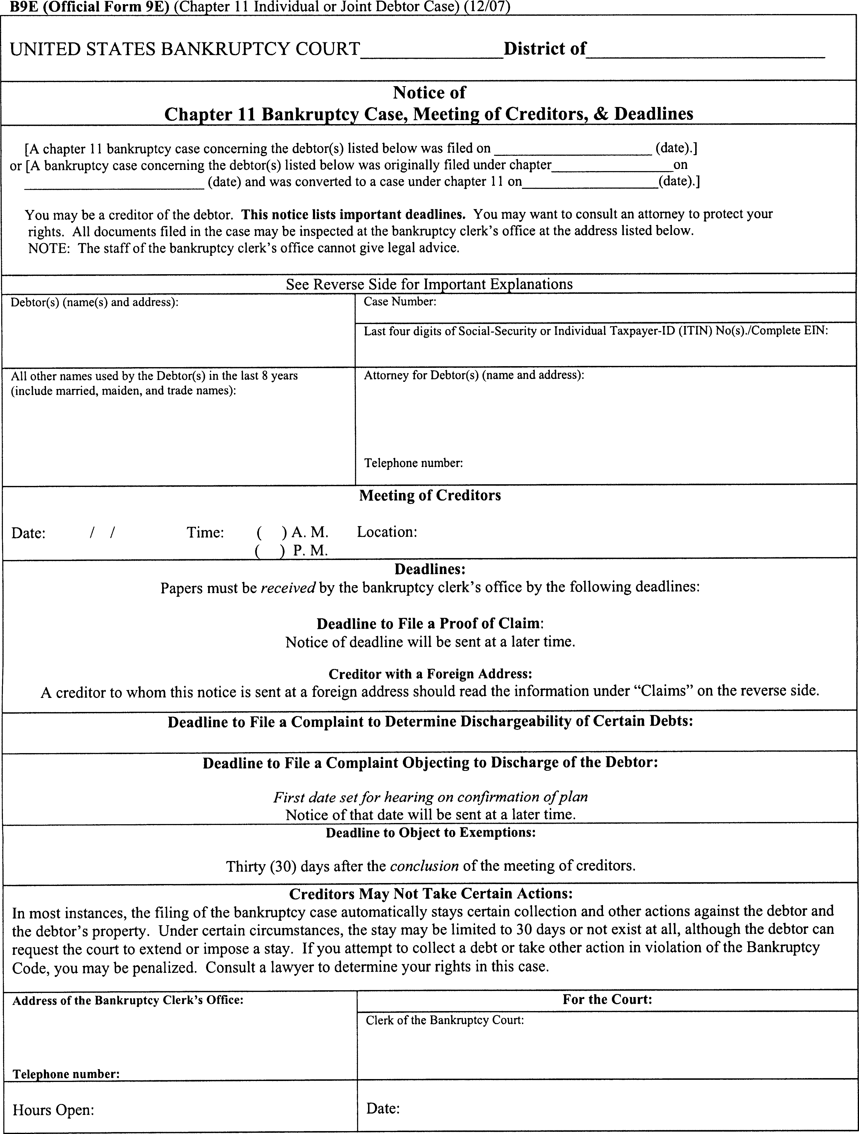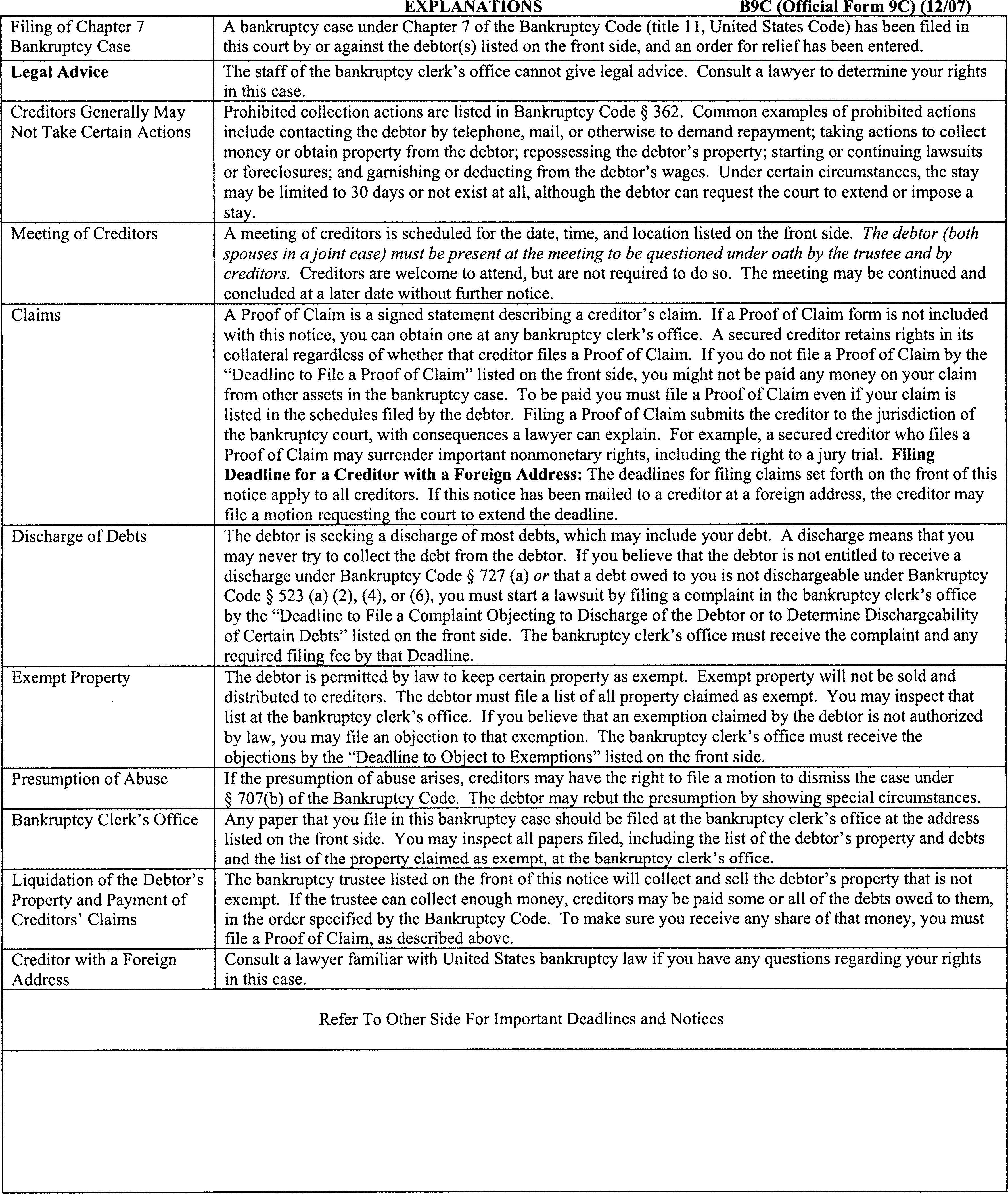For Committee Notes on Rules—2005–2008 Amendment for form 22C, see note set out under form 22A.