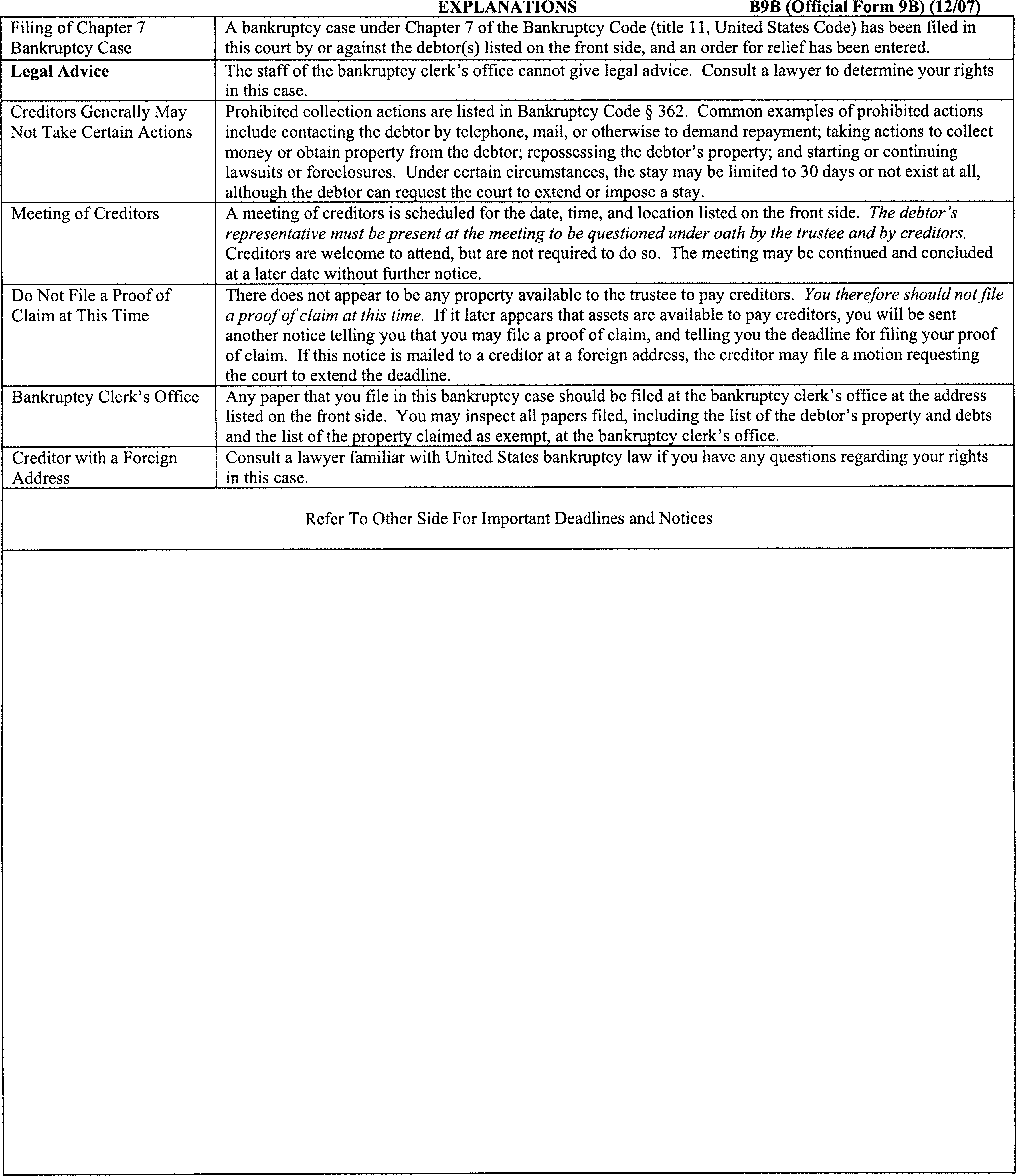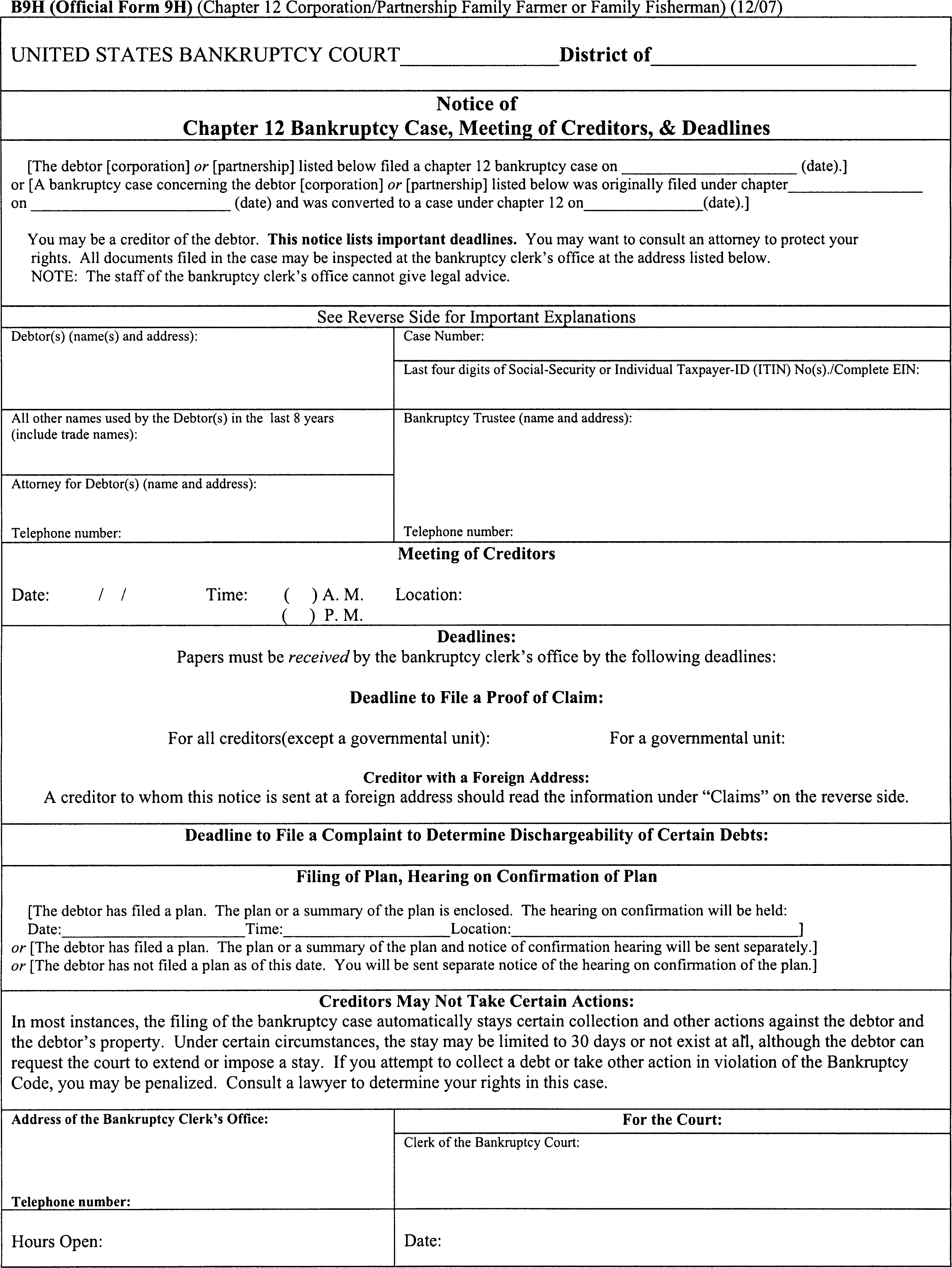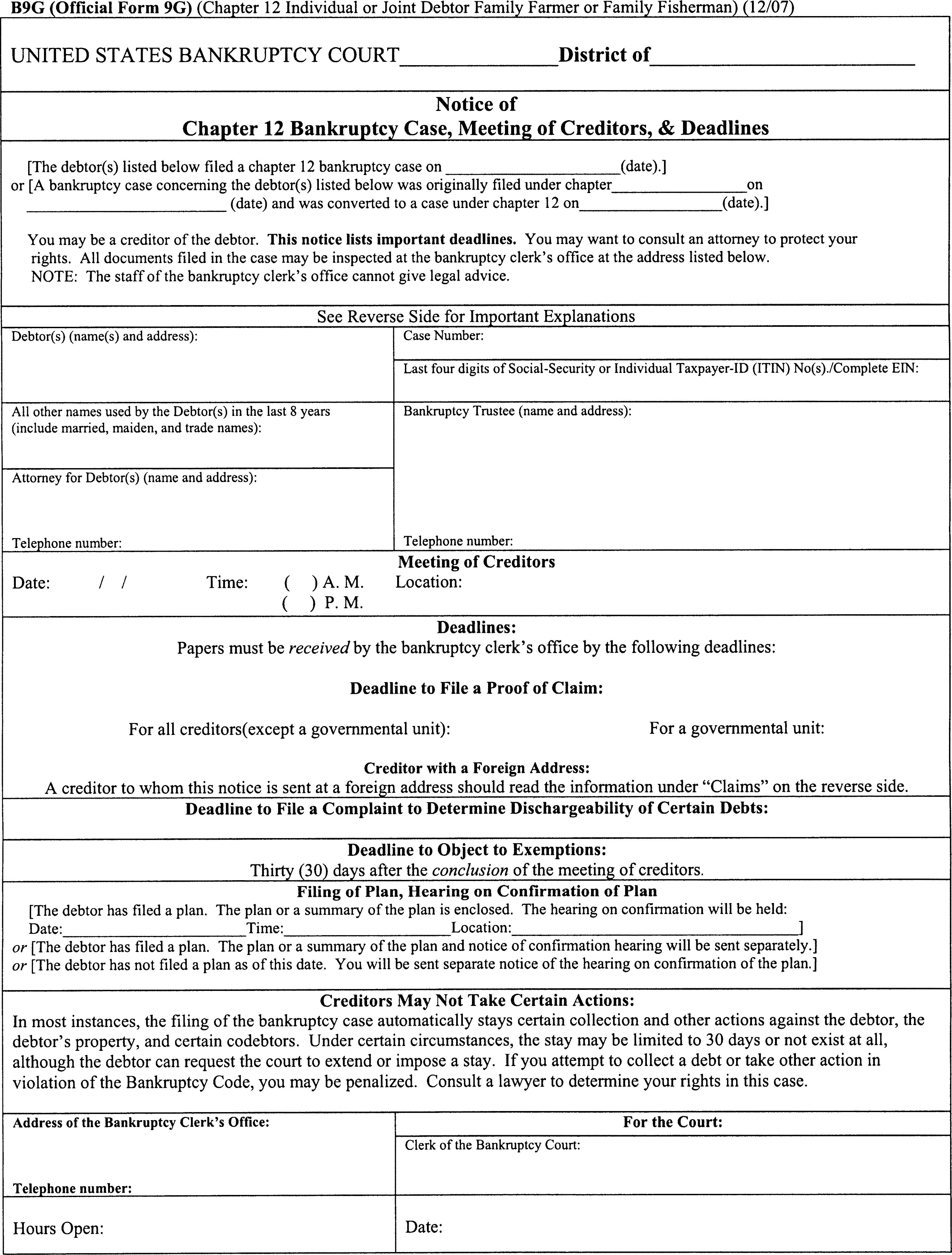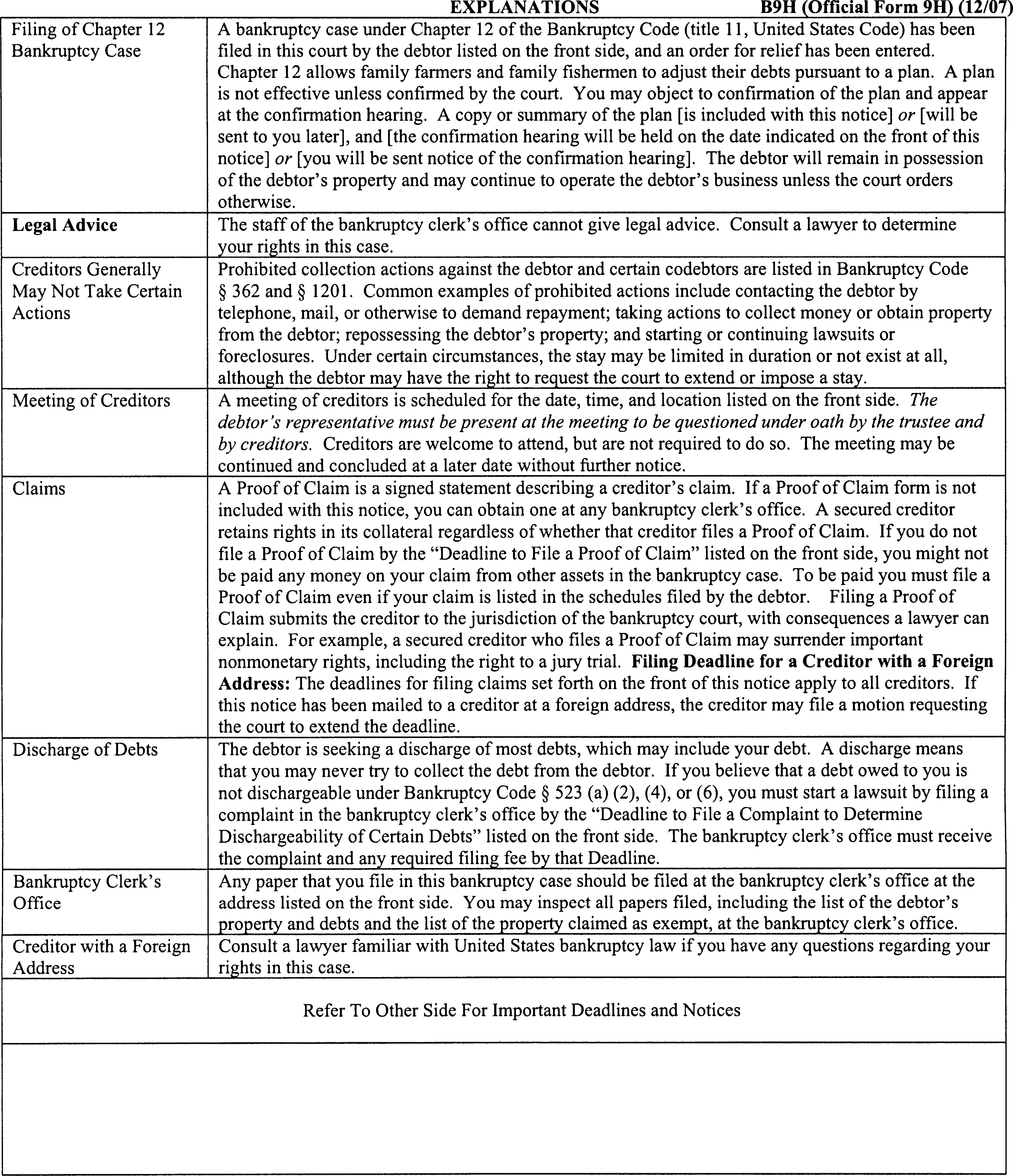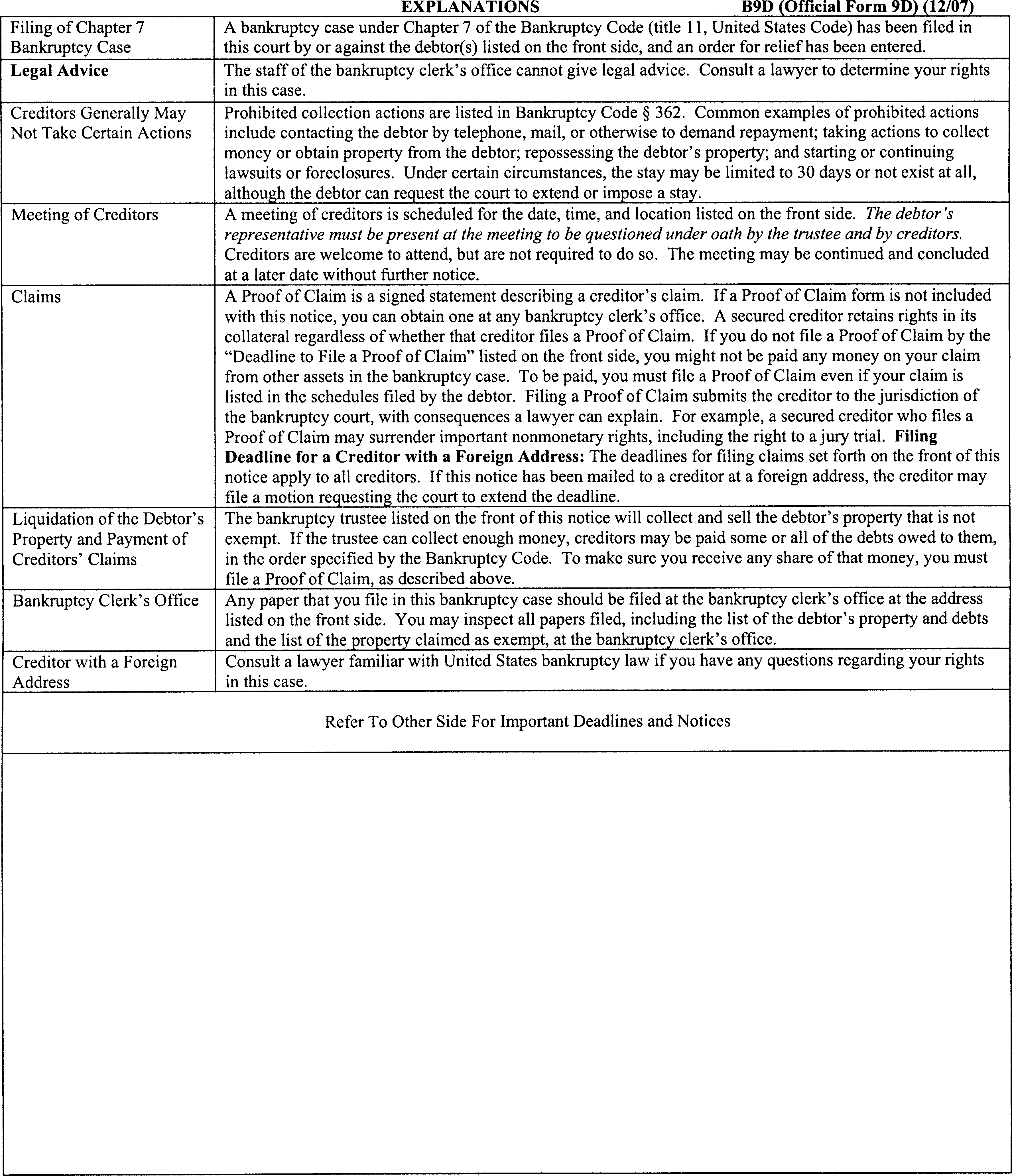 For Committee Notes on Rules—2005–2008 Amendment for form 22C, see note set out under form 22A.