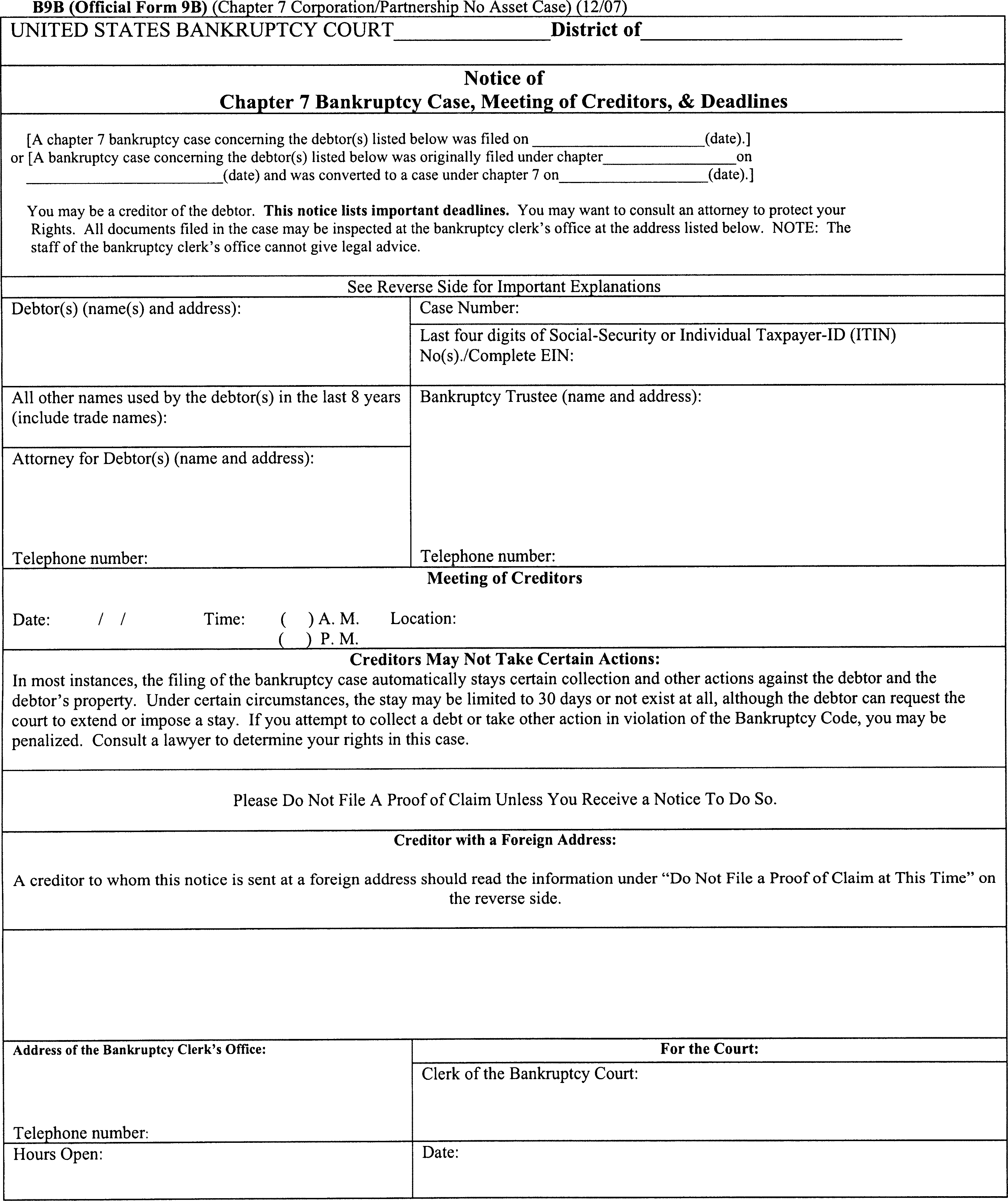 For Committee Notes on Rules—2005 for form 22B, see note set out under form 22A.