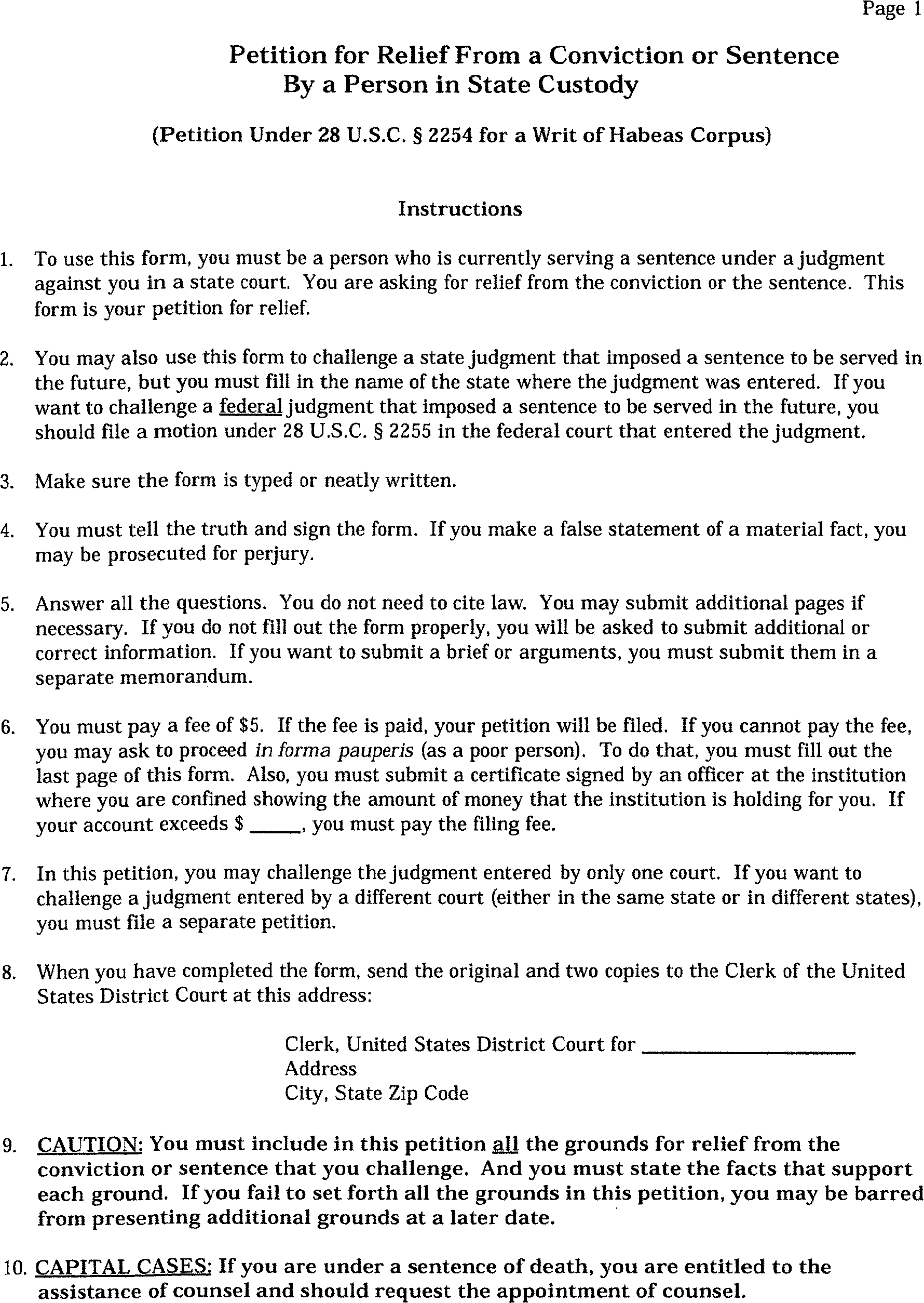 The annexed form is intended to serve the same purpose as the comparable one included in the §2254 rules.