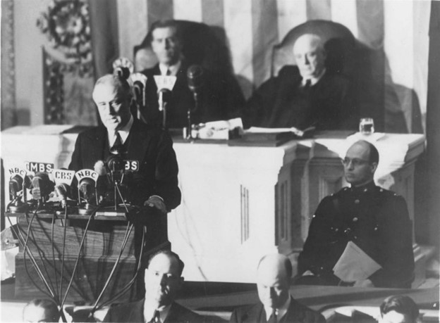 President Franklin Roosevelt called December 7, 1941, "a date which will live in infamy." On that day, Japanese planes attacked the United States Naval Base at Pearl Harbor, Hawaii Territory.